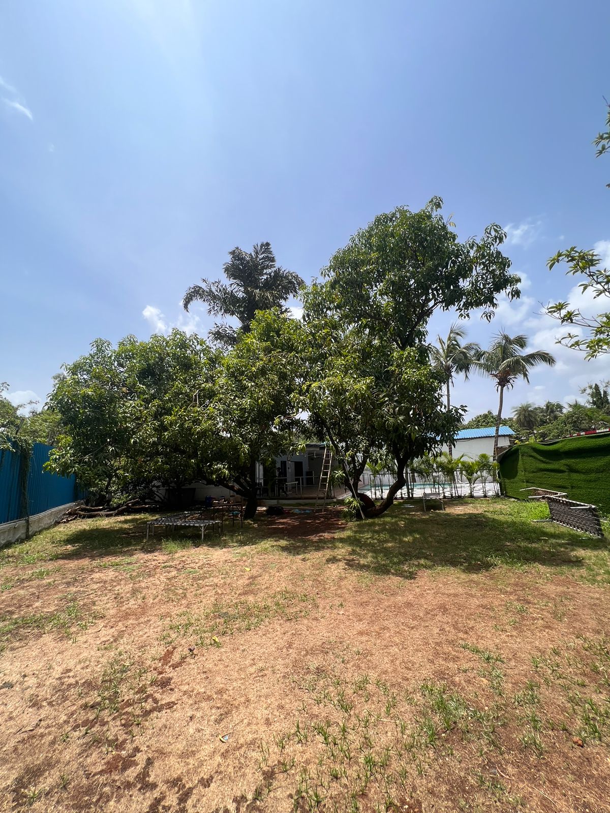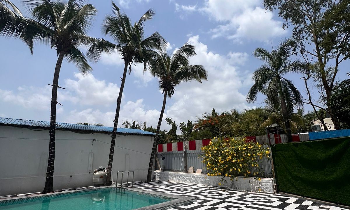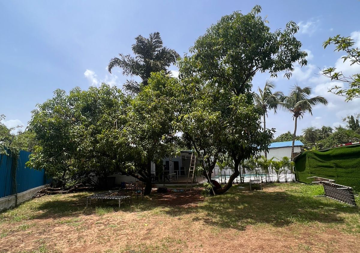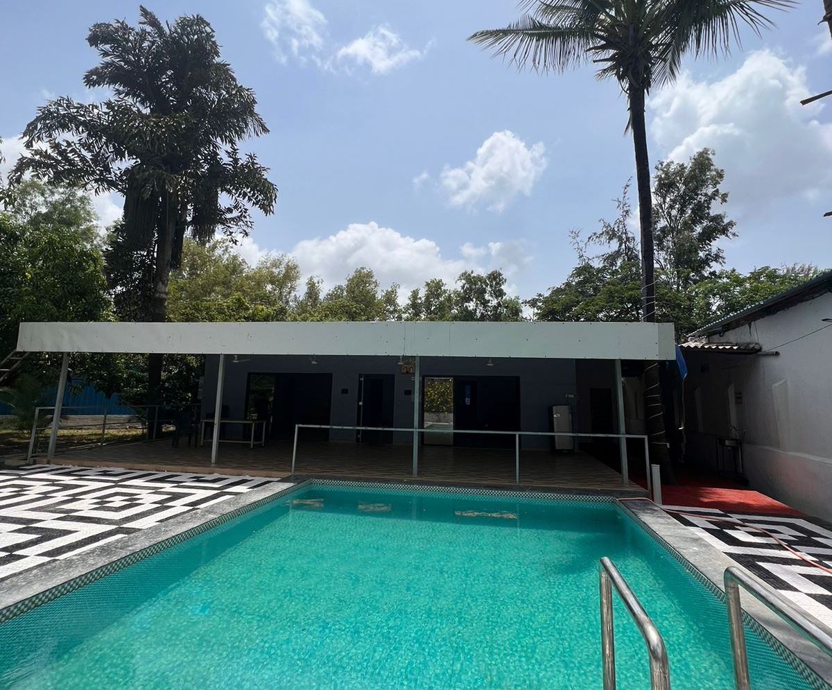 Outdoor space is with full grown trees and podium. The outdoor pool and tiled space are a perfect settings for you to relax and enjoy the chilled night Yeoor weather. It has an outdoor lounge area with dinning faclity also you can enjoy the views from there.