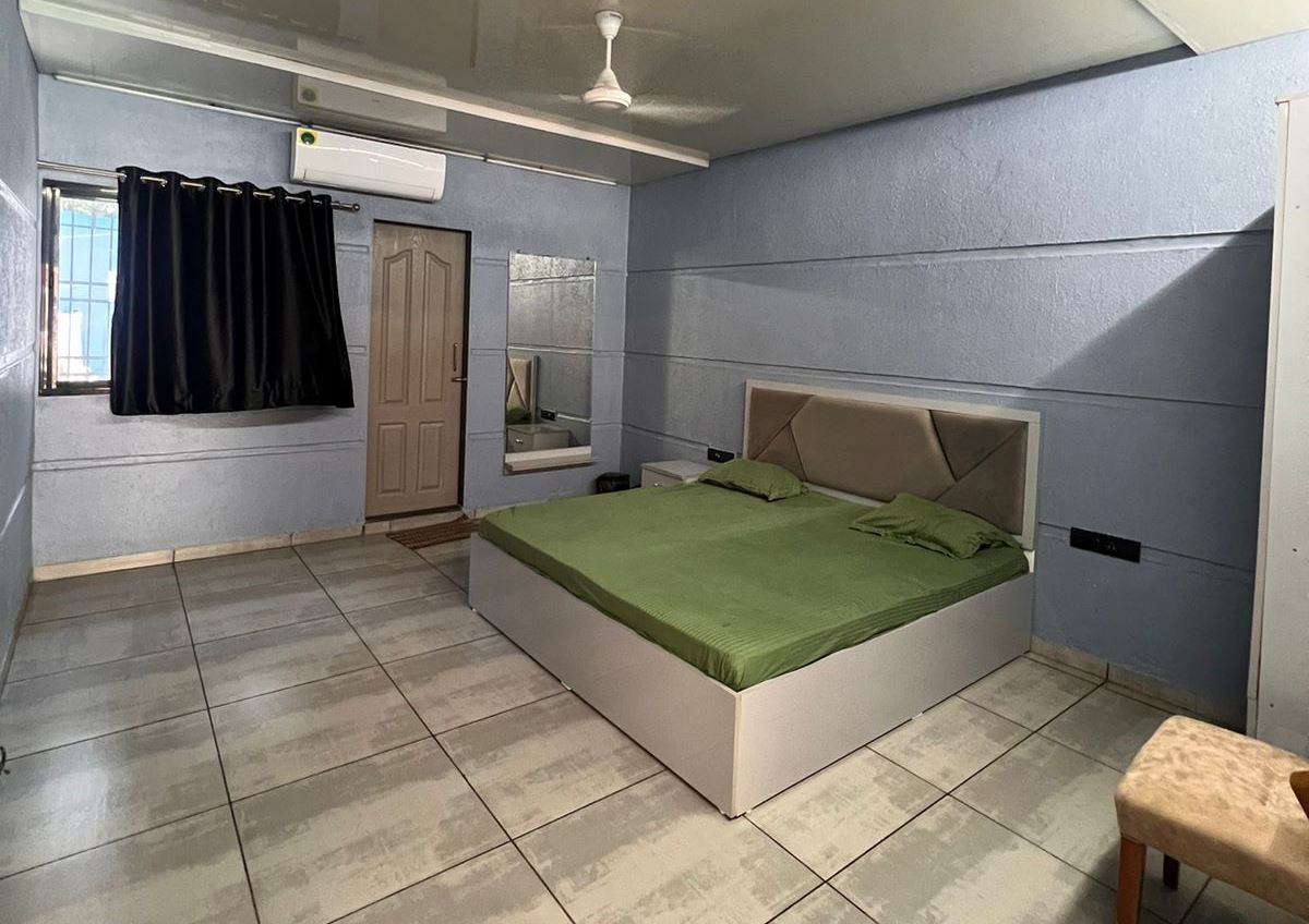 The comfortable living area is with sofa and center piece complete with a TV and an adjoining basic kitchen. The small pantry Kitchen to help you to heat the titbits and get the tea/coffee. The standout features are WIFI for the guest. Also it has a Generator for backup.
