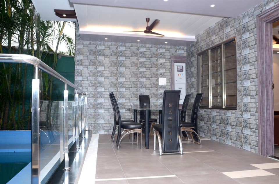 | Outdoors | Two Car parking. Outdoor Sitout area and sitting besides poolside. |
