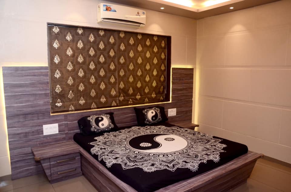| Bedroom One | Master bedroom with attached bath, wadrobe with dressing mirror. Sleeping is on the queen size double bed and ample space for extra mattresses. |